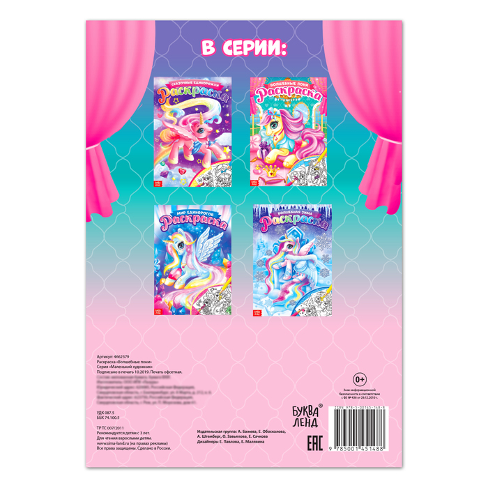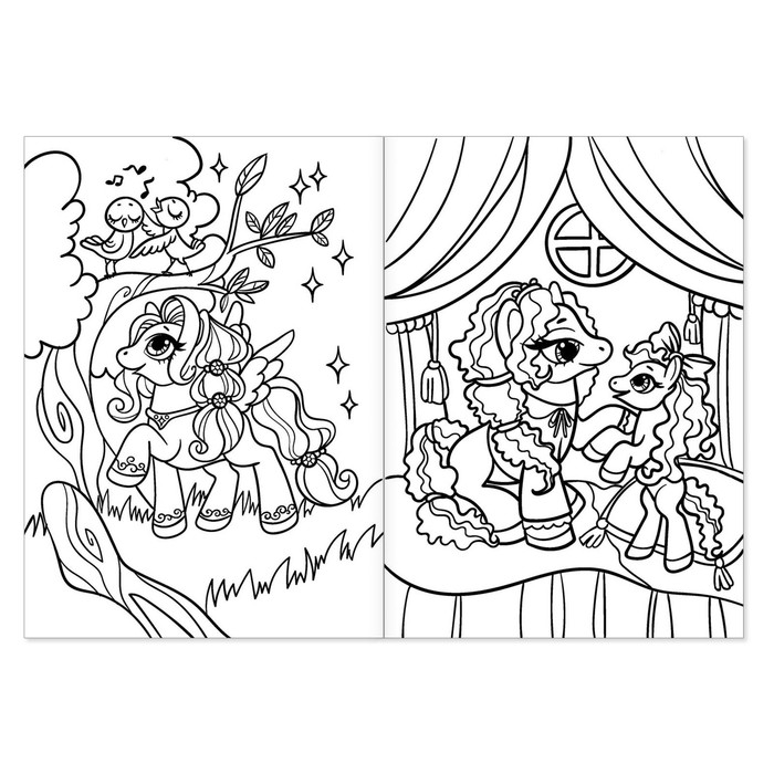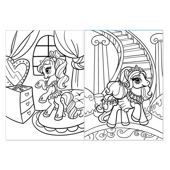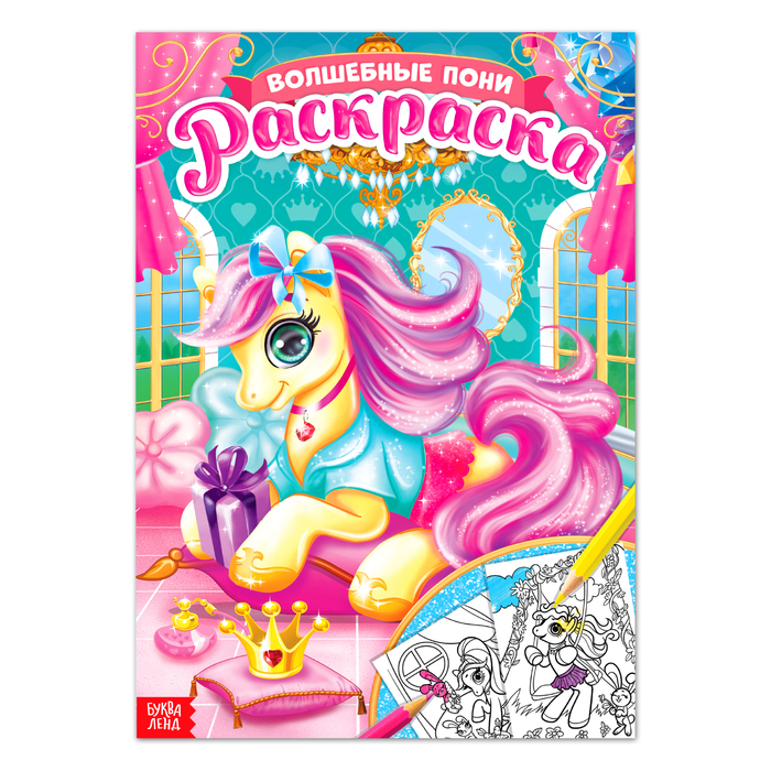 Раскраска «Волшебные пони» — книга с контурными картинками единорожек. Малышка сможет их раскрасить карандашами, красками или фломастерами. Страницы и обложка выполнены из бумаги.