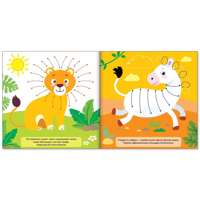 Книга «Рисуем пальчиками» имеет удобный формат для малыша, дополнена красочными картинками и интересными заданиями.