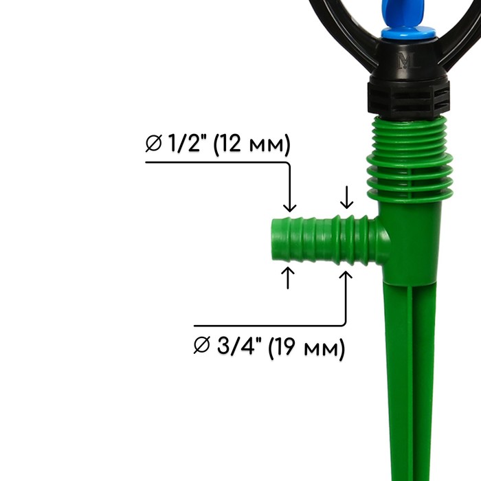 Под давлением воды распыляющая головка начинает вращаться и осуществлять полив.