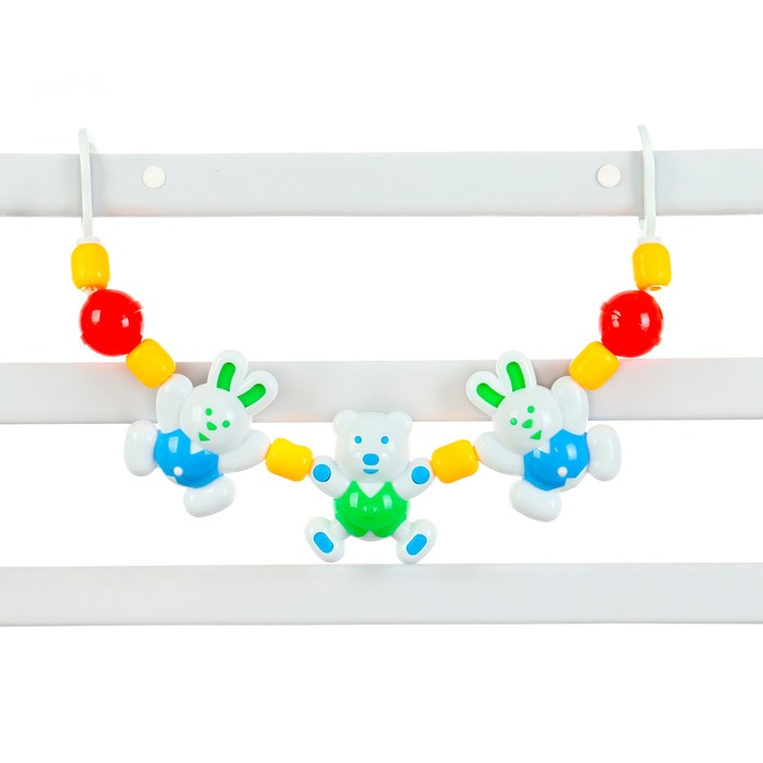 Погремушка-подвеска крепится на кроватку или коляску новорождённого. Игрушка успокоит и развеселит малыша дома и на прогулке. Кроха будет рассматривать яркий предмет и тянуться к привлекательным фигуркам.