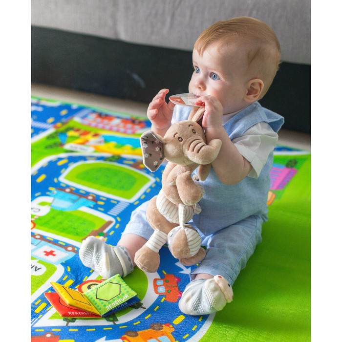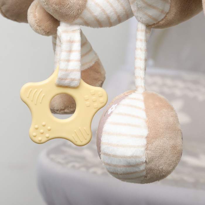 Звук в модели появляется при встряхивании. Причудливая форма надолго займёт внимание карапуза. Погремушку удобно использовать: лёгкая вещица подходит для захвата маленькими ладошками.