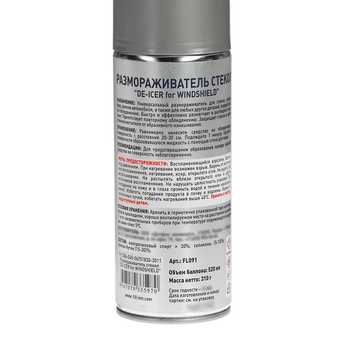 Универсальный размораживатель для стекол, зеркал, фар, замков автомобиля, а также для любых других деталей, подвергшихся обледенению. Быстро и эффективно размягчает и растворяет лед и снег. Препятствует повторному обледенению. Защищает стекла и щетки стеклоочистителя от абразивного изнашивания.