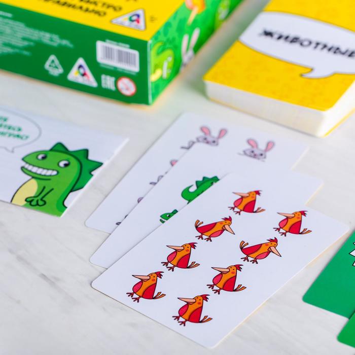 Если количество изображений любого из трёх животных в сумме на всех открытых картах соответствует числу на карточке задания — успевайте хлопнуть по карте первым!