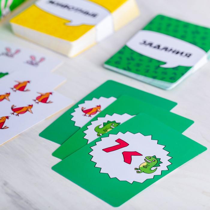 Эта простая и интересная игра позволит потренировать навыки устного счёта. Выкладывайте карточки, внимательно смотрите на изображённые на них предметы и следите, чтобы были выполнены все условия задания!