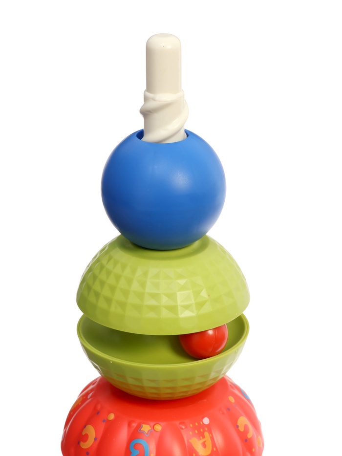 Развивающая пирамидка «Закрути шарик» — яркая интерактивная игрушка, которая превращает обычную сборку пирамидки в динамичную игру. Объёмные половинки деталей легко насаживаются на стержень, вращаются, скатываются и создают эффект движущейся башни. Высота конструкции — 37 см, что делает её удобной для игры детям от 3 лет.