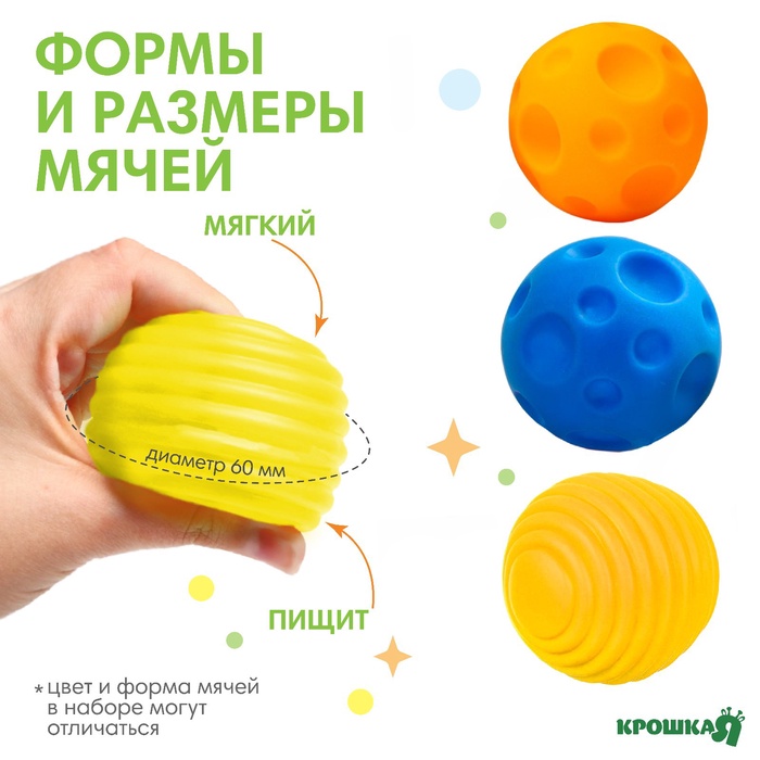 Мячики выполнены из приятного на ощупь материала, и малышам очень удобно держать их в руках.