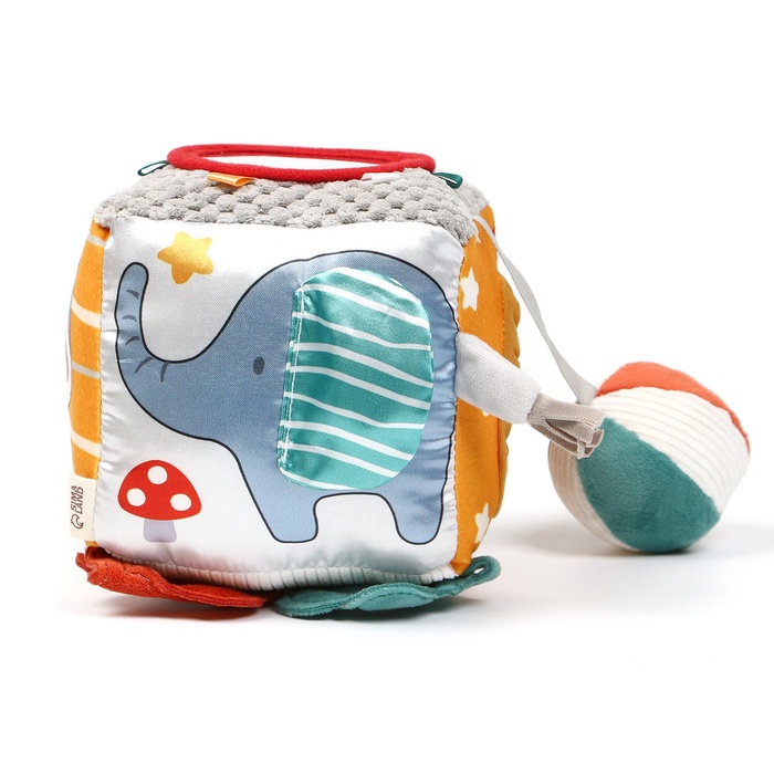 Игровой кубик выполнен из мягких материалов, что обеспечивает безопасность и комфорт новорожденных и детей до 3 мес.