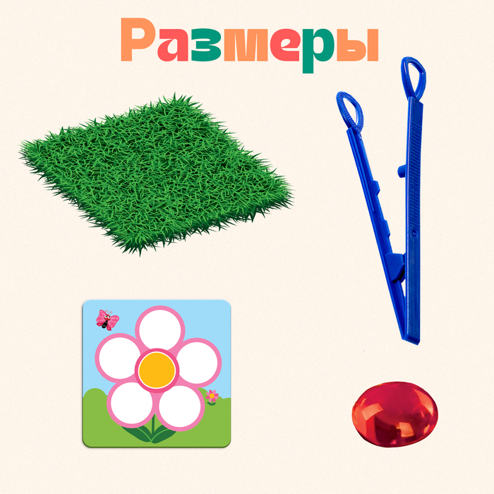 В развивающий набор «Цветная роса» входят лесная полянка с волшебными камешками марблс, чудо-пинцет и карточки с заданиями.