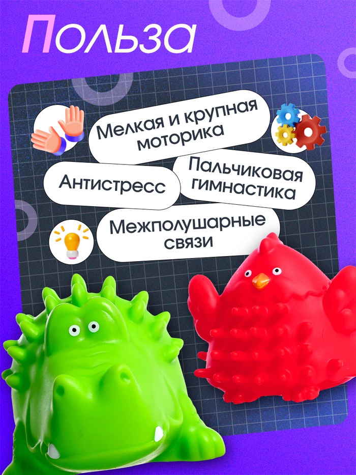 - Антистресс-эффект — игрушки можно мять, катать и сжимать, расслабляя пальцы и кисти.