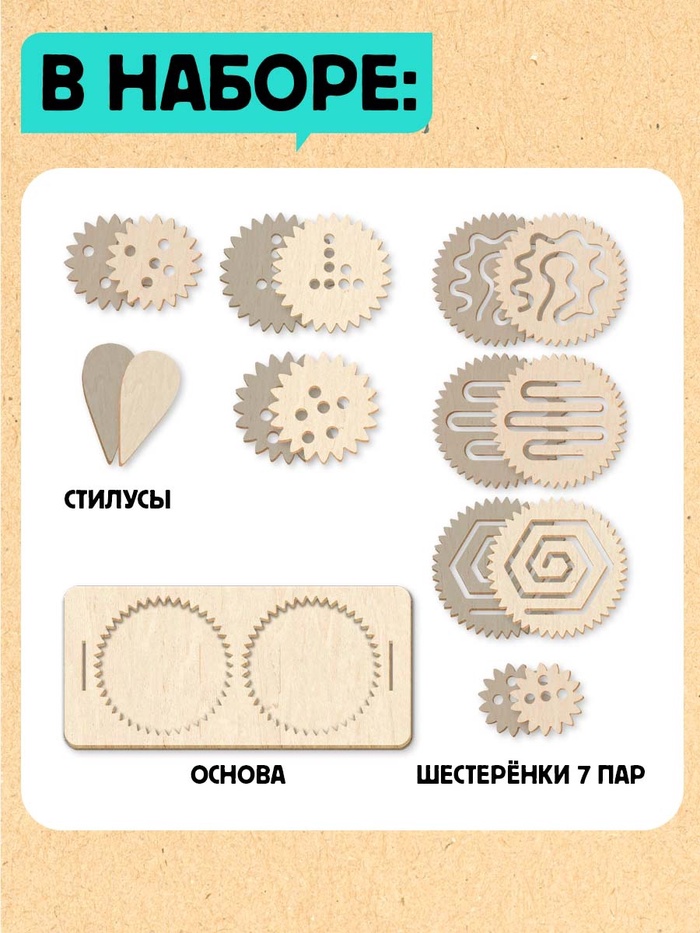 Развивающий набор «Нейротренажёр. Шестерёнки» предназначен для детей от 3 лет. Этот набор помогает развивать мелкую моторику, логическое мышление и координацию движений. Нейротренажёр состоит из деревянных элементов, безопасных для ребёнка, и предлагает 25 различных комбинаций.