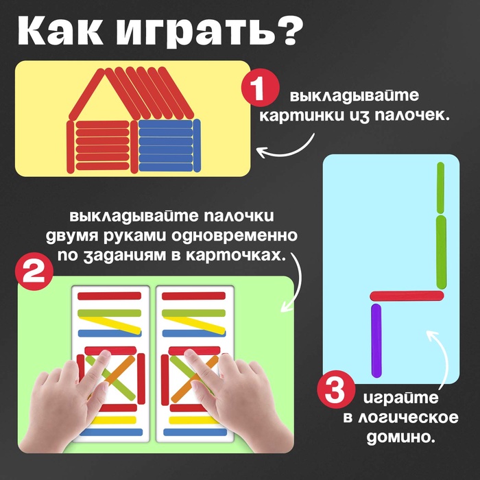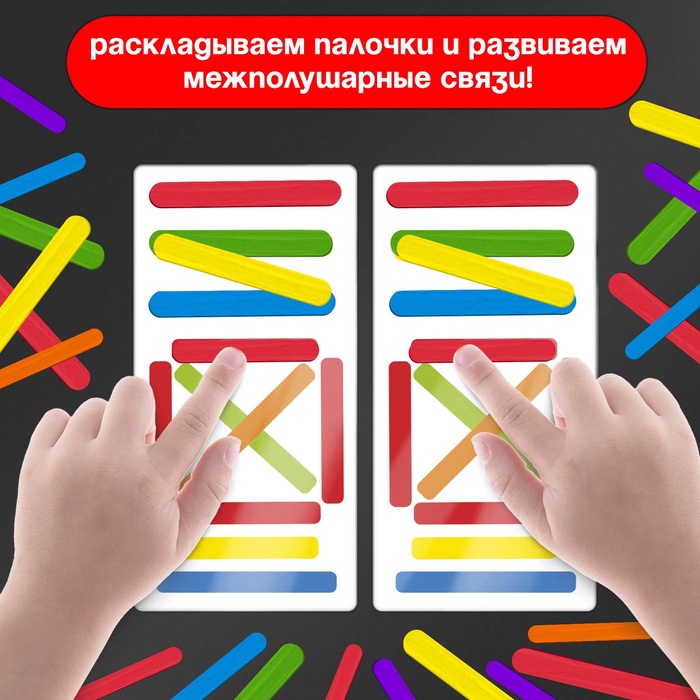 - Выкладывайте палочки двумя руками одновременно по заданиям в карточке.