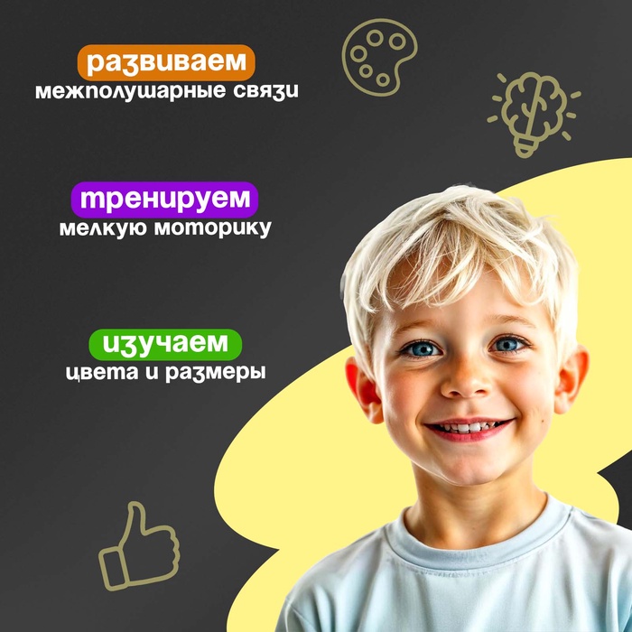 Развивающий «Разложи палочки» — это увлекательная игра для малышей от 3 лет, которая помогает освоить базовые навыки счёта и логики. Ребёнок изучает формы и размеры, строит различные узоры и фигуры.