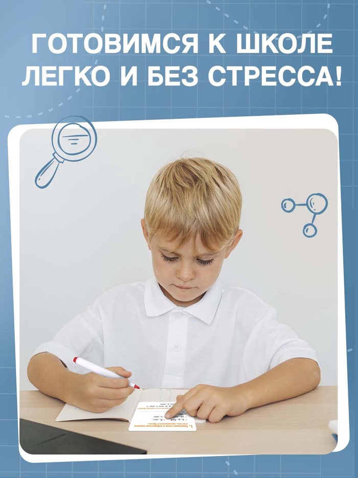 - Стирающийся маркер для выполнения заданий прямо на карточках.