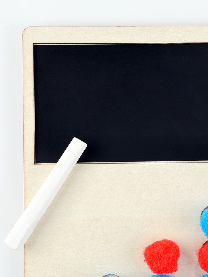 - Доска с меловым полем для написания примеров, отверстиями для размещения шариков-ответов и цифрами с нижнего края доски.