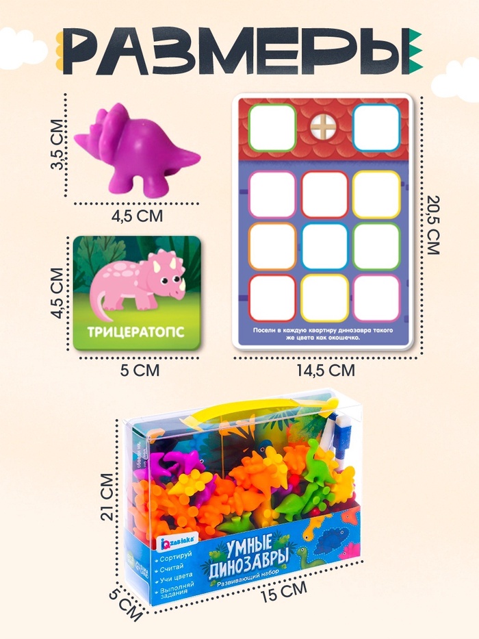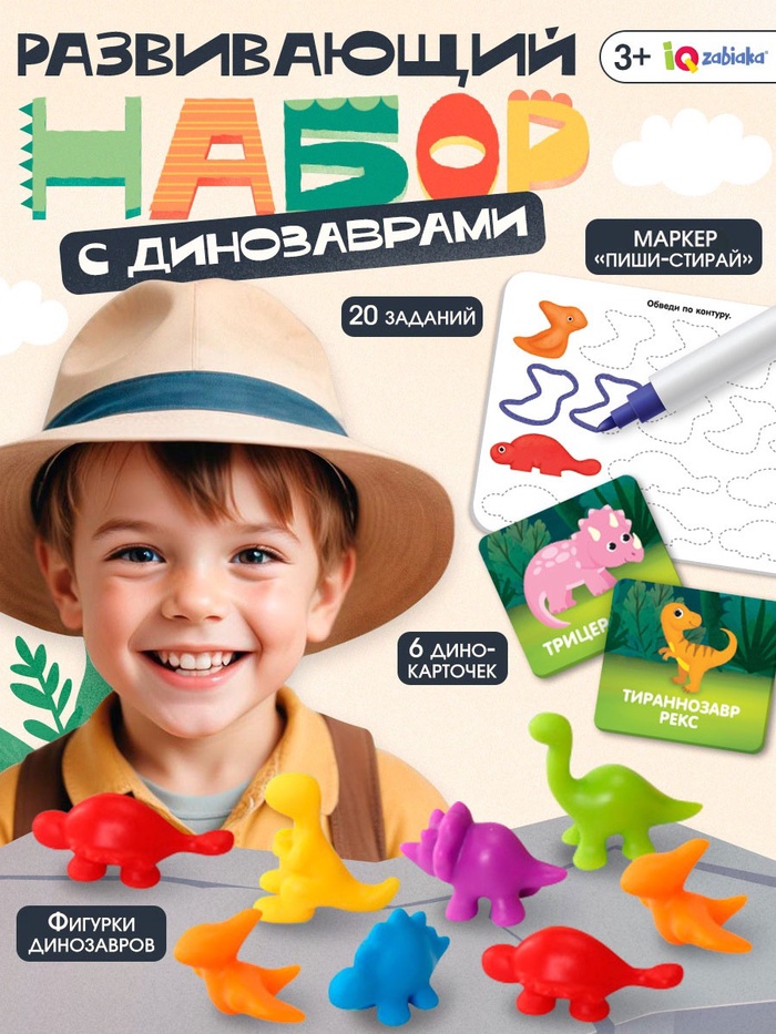 «Умные динозавры» — развивающий набор для детей от 3 лет. Ребёнок окунётся в эпоху юрского периода и познакомиться с удивительными животными. Малыша ждут интересные задания, яркие карточки с изображением динозавриков и увлекательные факты.