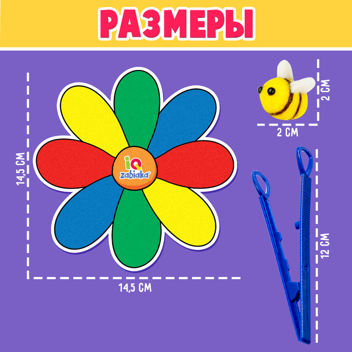 - Учит счёту: в наборе основа в виде цветочка, состоящая из 8 лепестков и 12 цветных пчёлок.
