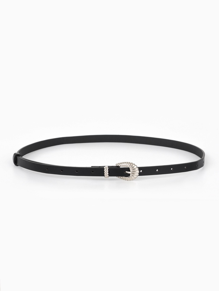 Ремень жен, 02-01-02-01, 1,5*0,3*110 см, без винта, пряжка серебро, 1 прокол, черный