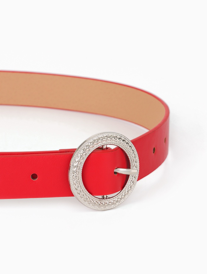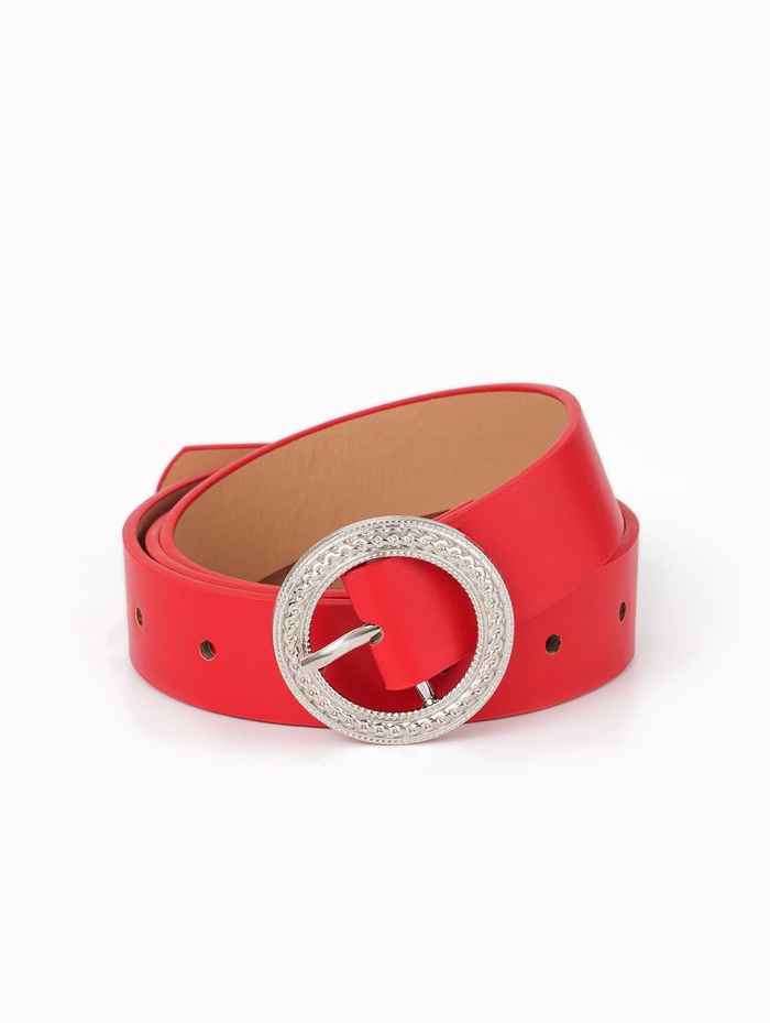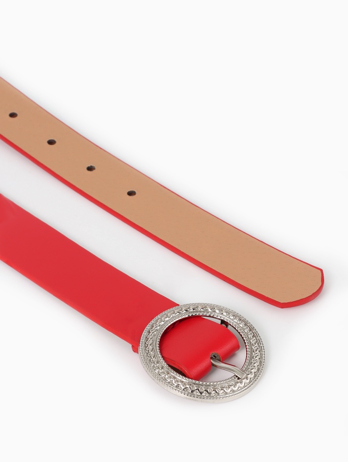 Ремень жен, 06-01-02-01, 3,5*0,3*110 см, без винта, пряжка серебро, 1 прокол, красный