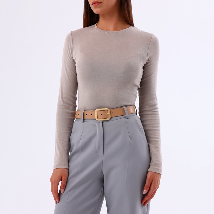 Ремень становится тем аксессуаром, который объединяет элементы образа в целостную композицию. Он добавляет стильный акцент к платьям-футлярам, льняным брюкам и летним сарафанам. Сдержанный бежевый тон создает гармоничное сочетание с разными цветами, а золотистая фурнитура придает луку нарядность. Такой ремень работает на универсальность — его можно носить в офисе, на прогулке или встрече с друзьями, создавая элегантный и продуманный образ.