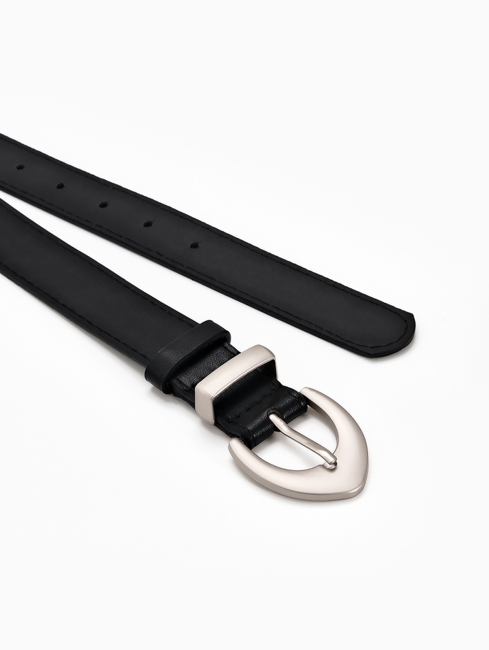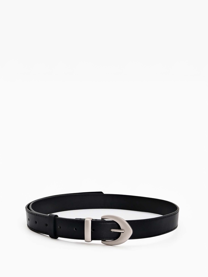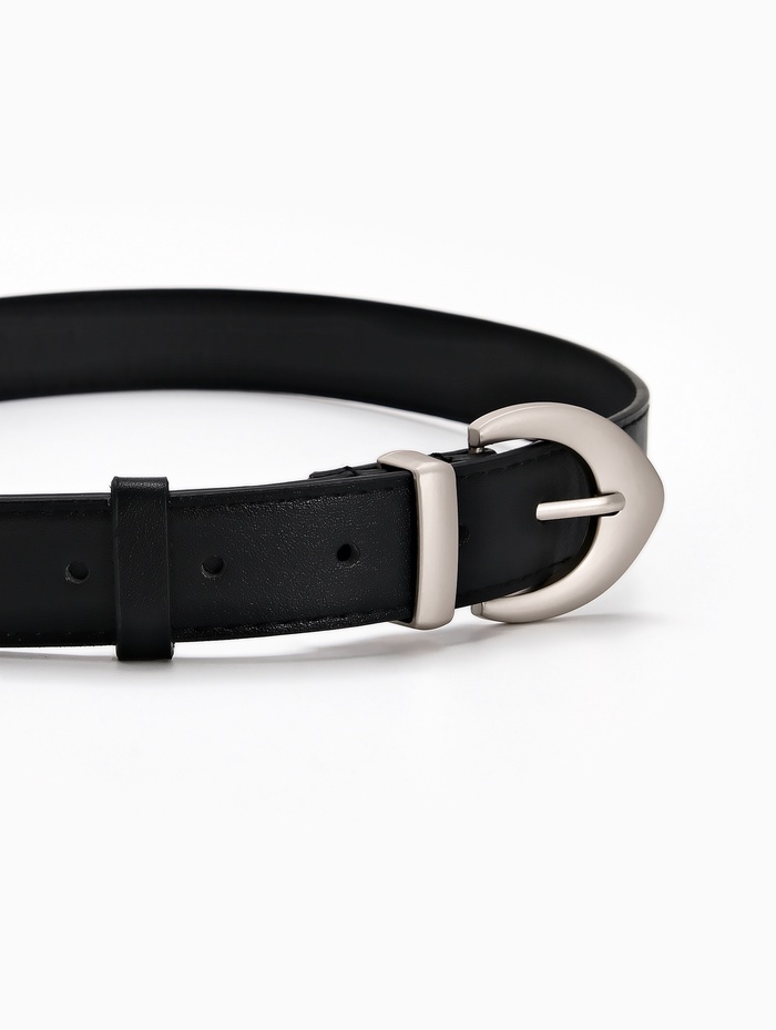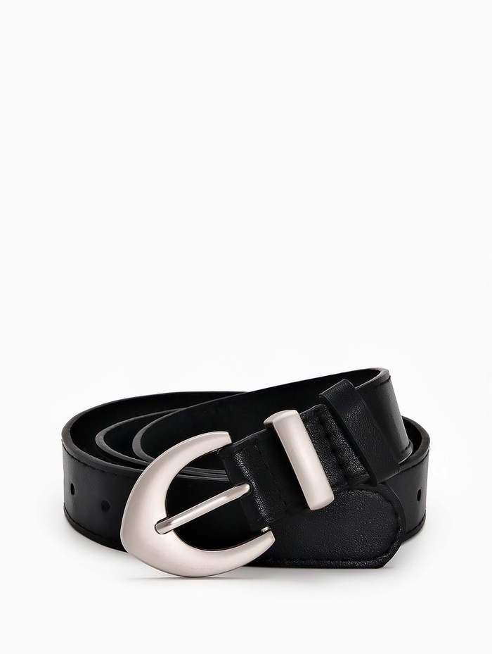 Черный ремень легко сочетается с джинсами, брюками и платьями из разных материалов. Он добавляет завершающий штрих в деловые и повседневные комплекты, сохраняя их гармонию. Матовая пряжка создает современный акцент, который сочетается с серебряными украшениями, а ширина 3 см обеспечивает комфортную посадку в течение всего дня.