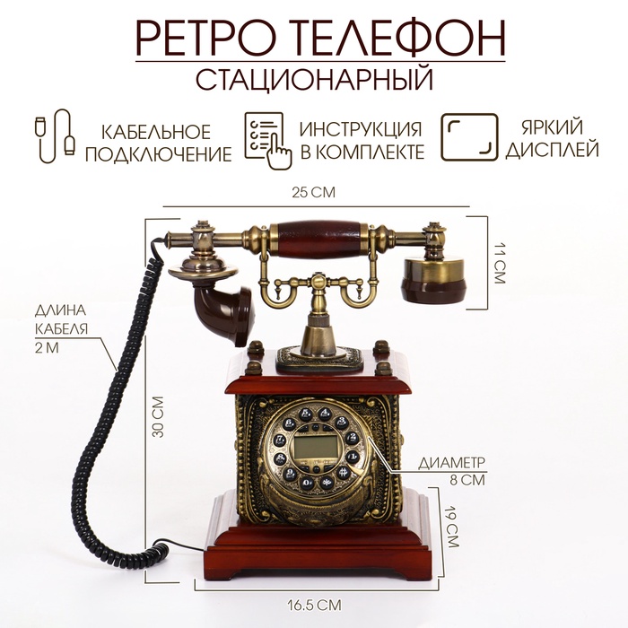 Ретро-телефон, громкая связь, 16.5 х 30 см