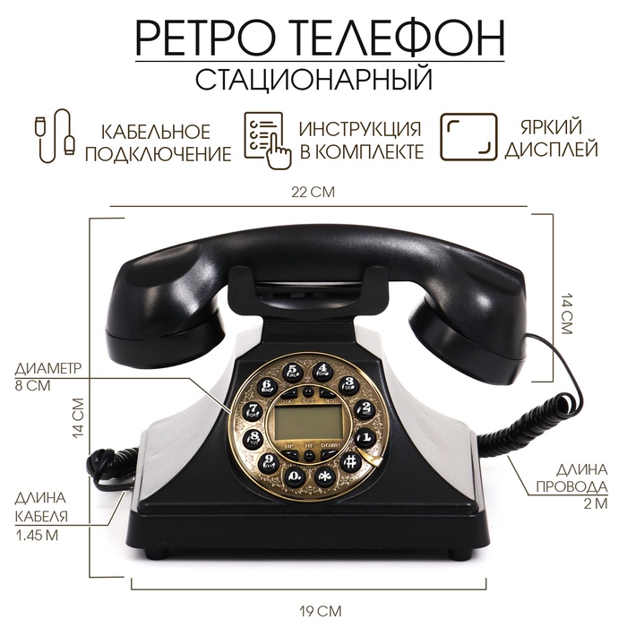 Изготовленный из высококачественных материалов, наш ретро-телефон привлекает внимание своей утонченной отделкой и выразительными линиями. Такой телефон станет идеальным акцентом в любом интерьере — от уютной гостиной до строгого офисного пространства. Его винтажный вид, дополненный элегантной ручкой и механическими кнопками, создает эффект возвращения в золотую эру телекоммуникаций.