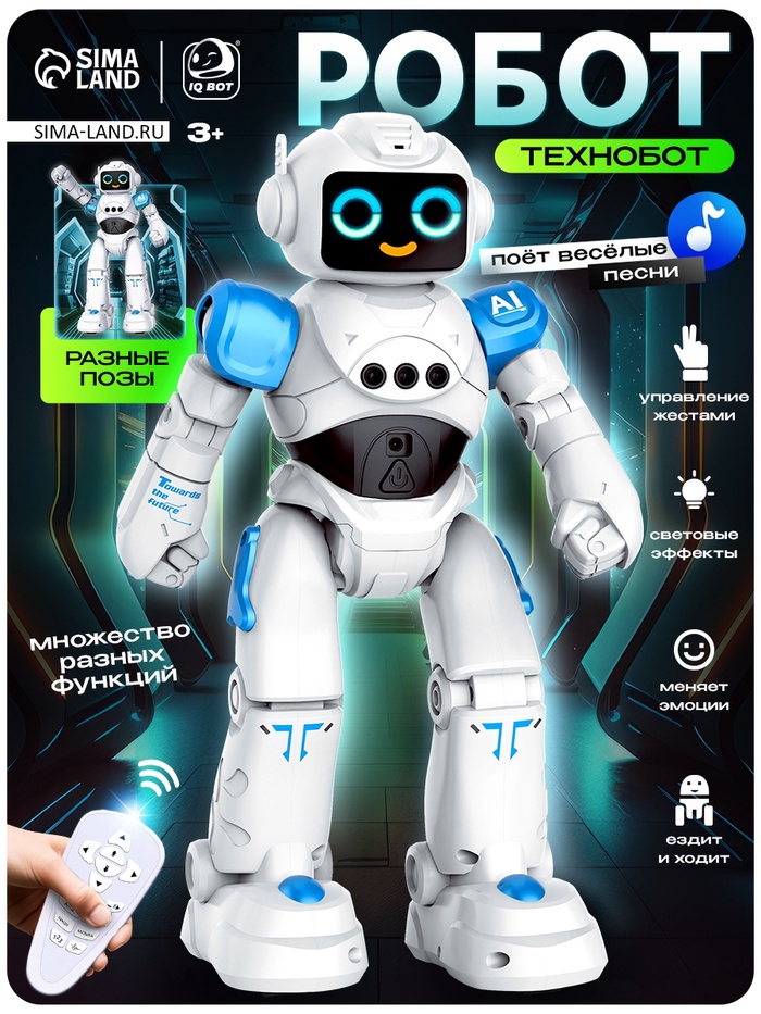 Интерактивный робот нового поколения! «ТехноБот» – это умный помощник, который не только двигается, но и реагирует на жесты, танцует, говорит и выражает эмоции!