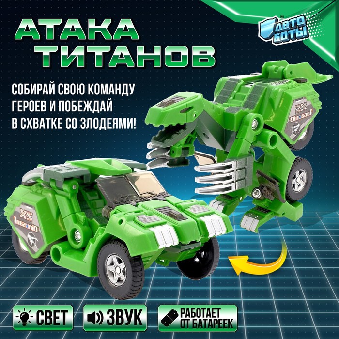 Маскируясь под автомобили, роботы живут среди нас. Когда тёмные силы атакуют планету, они трансформируются, чтобы дать отпор. «Динобот» — один из таких героев. Мальчишка с удовольствием вступит к нему в команду и вместе с киберзащитником сохранит Землю от уничтожения.