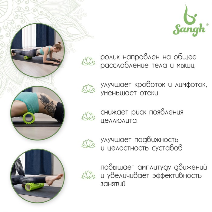 Ролик массажный Sangh, 30х10 см, цвет зелёный