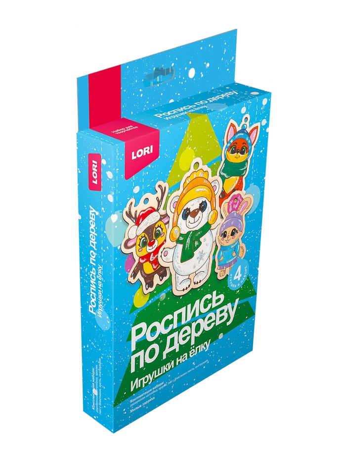 Роспись по дереву, елочные игрушки «Милые зверята», набор для творчества