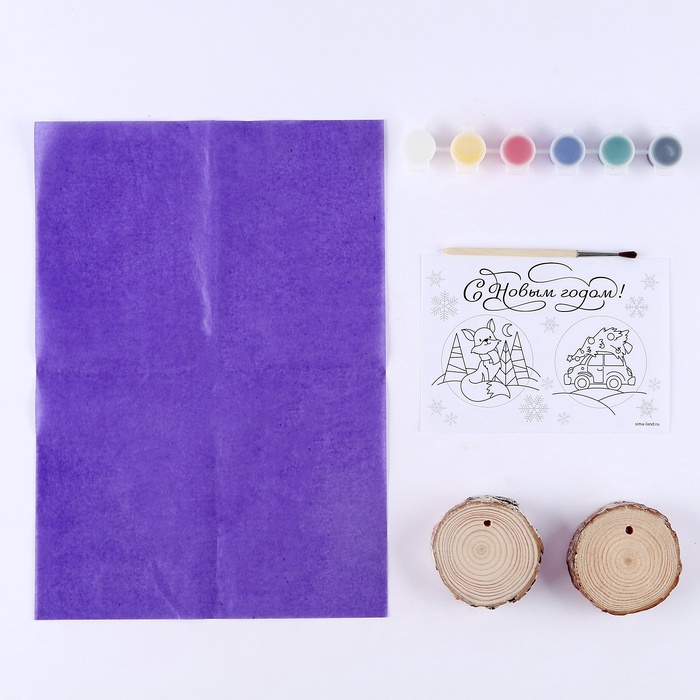 - В комплект входят деревянные заготовки, краски и кисточка.