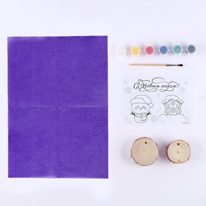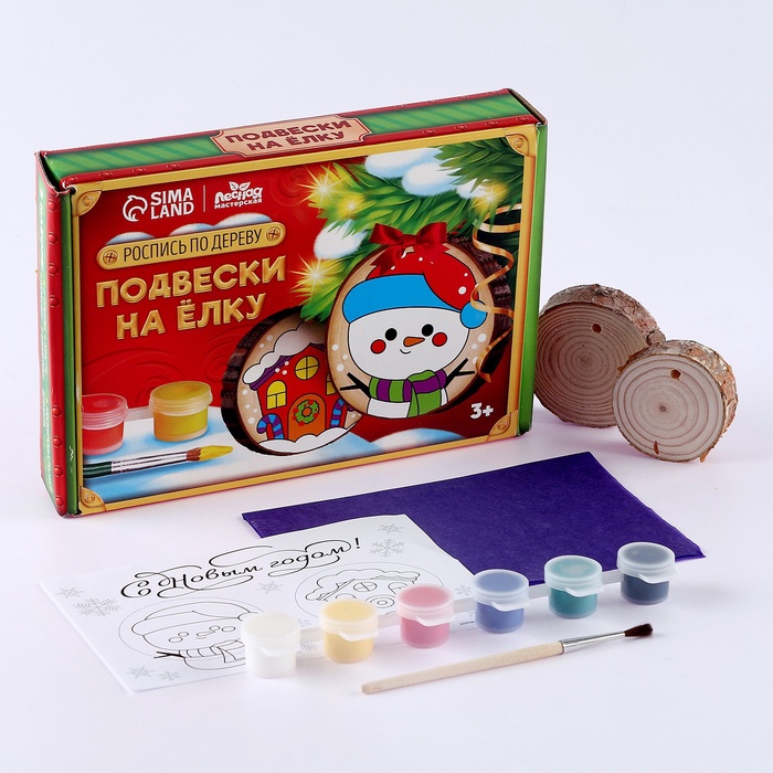 • В комплект входят деревянные заготовки, краски и кисточка.