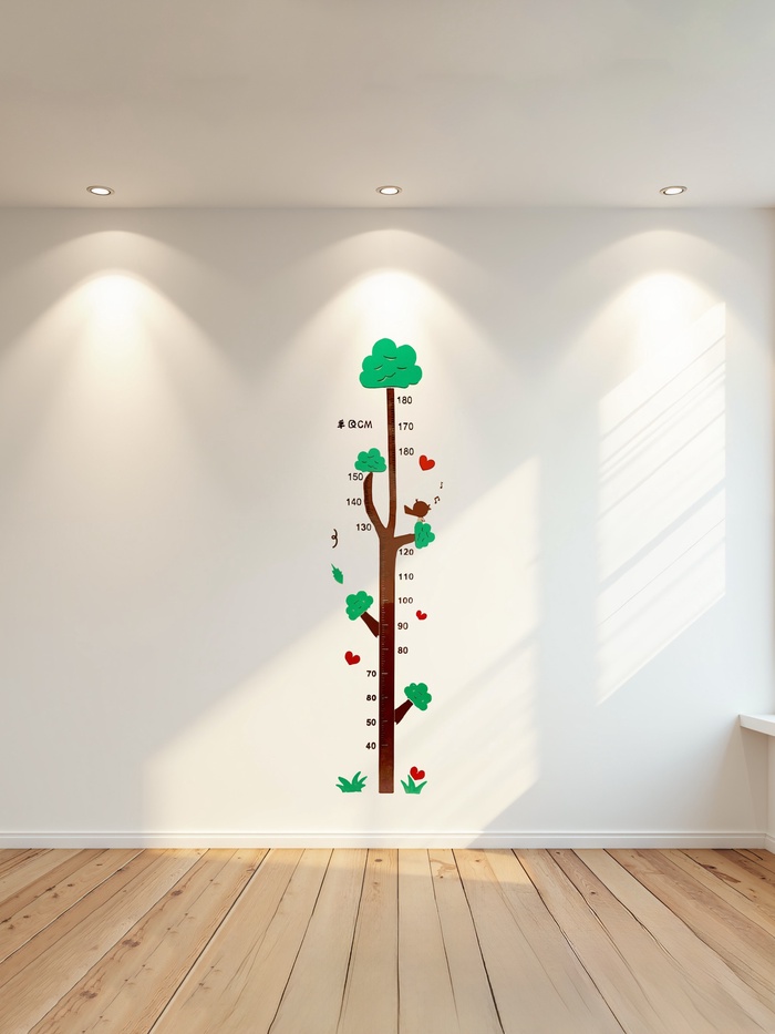 - Приложите наклейку к стене, наметьте место, куда вы хотите её приклеить. При необходимости закрепите её малярным скотчем, чтобы посмотреть издалека, как она будет выглядеть. Если устраивает — начинайте клеить.
