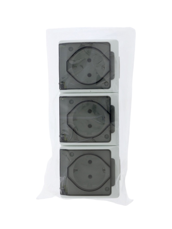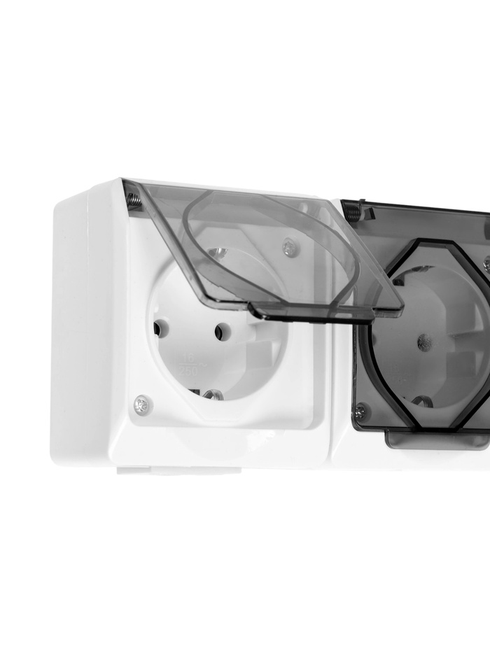 Розетка трехместная, 16 А, накладная, с з/к, IP 44, уличная, белая