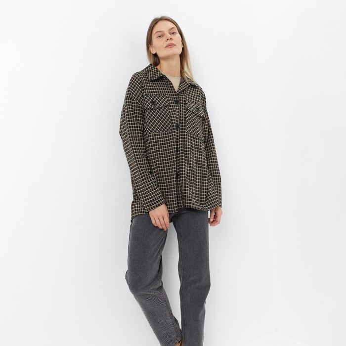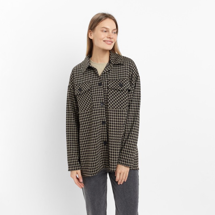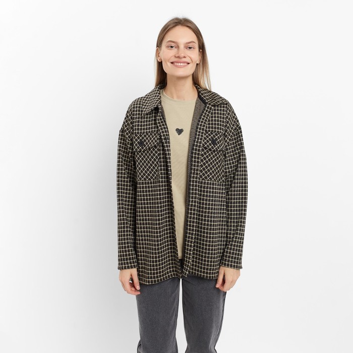 Рубашка женская, цвет бежевый/чёрный, размер 50