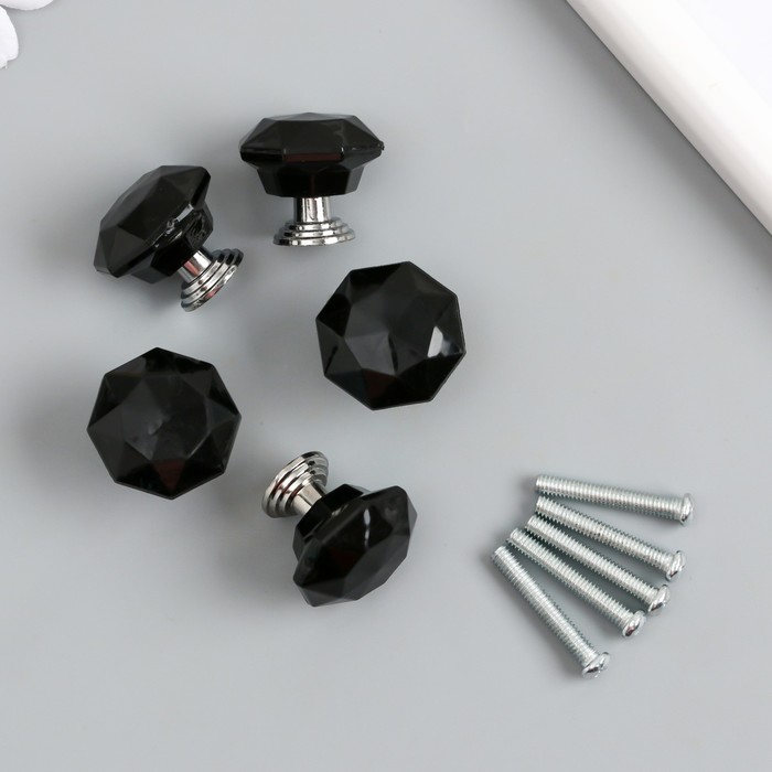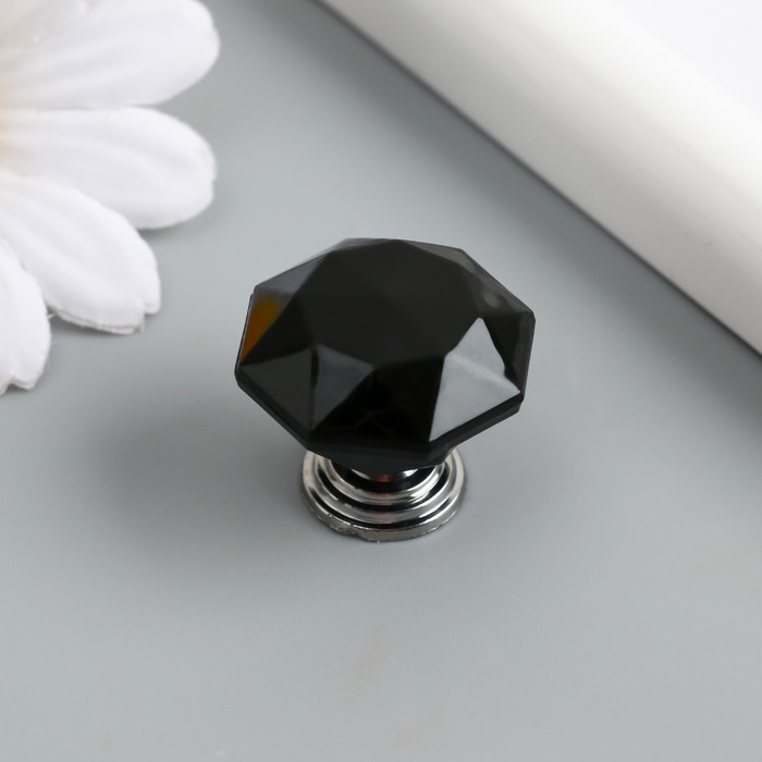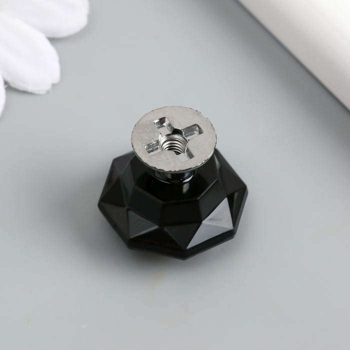 Ручка для шкатулки металл "Кристалл чёрный" серебро 2,6х2,6х2,4 см