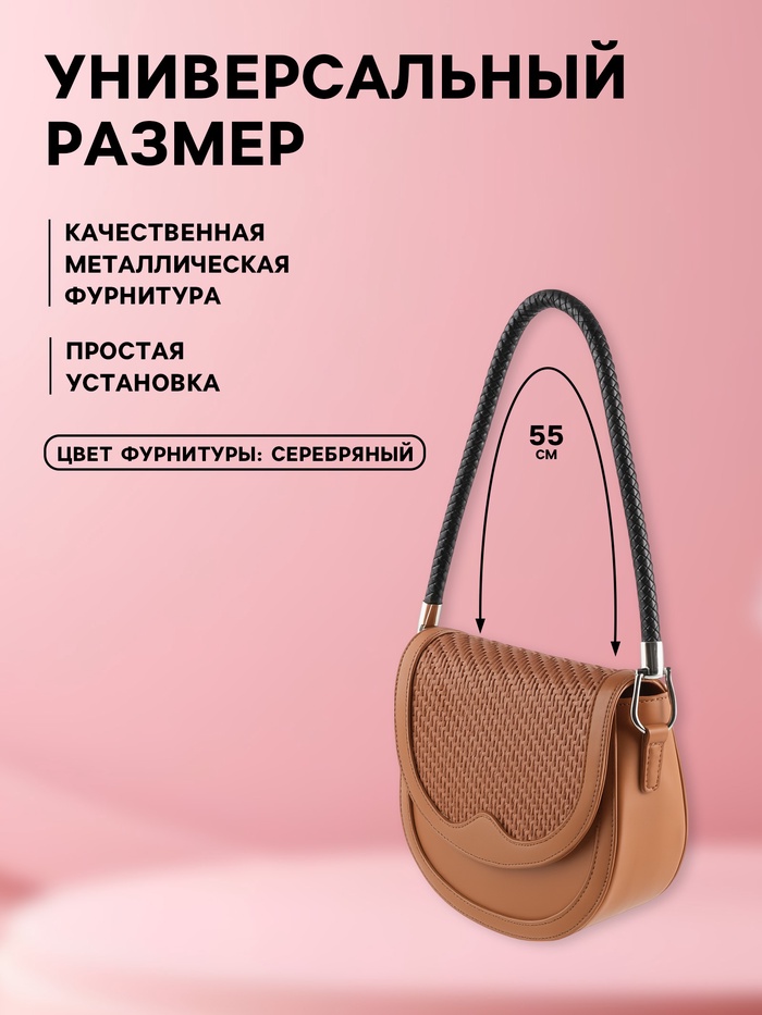 Чёрная кожаная ручка для сумки длиной 55 см от бренда «Арт Узор» — универсальное решение для повседневного использования. Изделие из качественной искусственной кожи с серебристой фурнитурой сочетает практичность и стильный внешний вид. Идеальная длина позволяет носить сумку как в руке, так и на сгибе локтя.