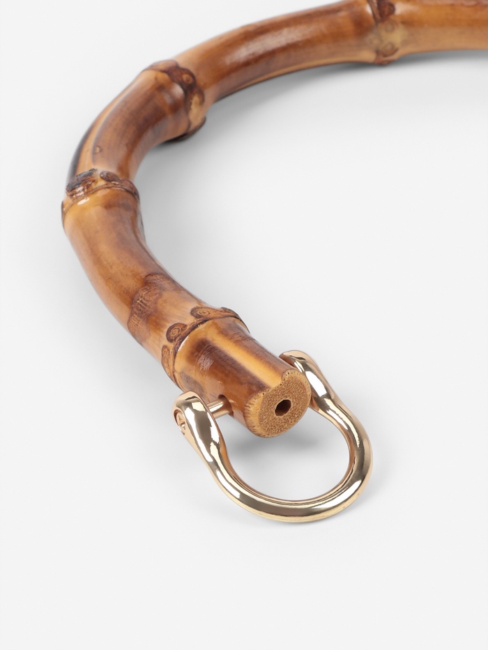 Эта ручка для сумки из бамбука с полукольцами — стильное решение для обновления вашего аксессуара. Размер 13,5×10,5 см позволяет использовать ее с различными моделями. Бежевый цвет натурального бамбука в сочетании с золотой фурнитурой создает элегантный и современный образ.