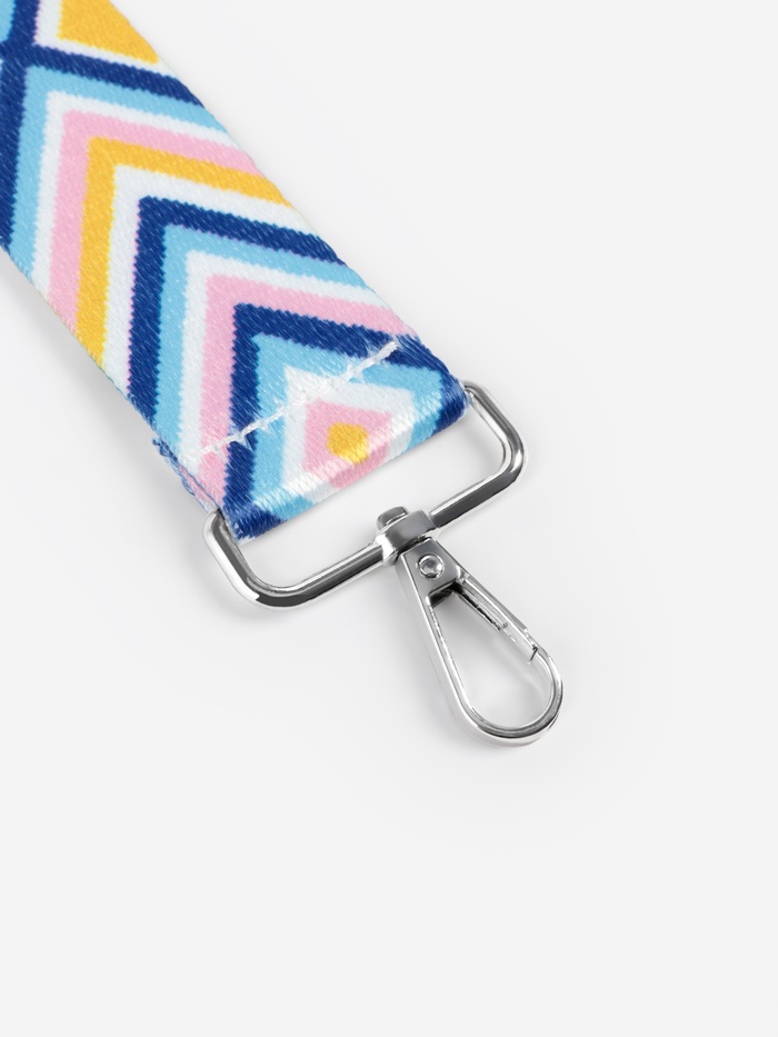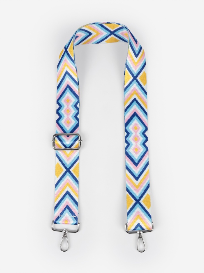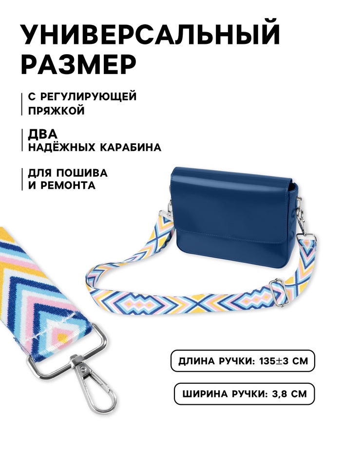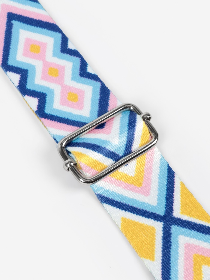 Яркий ремень для сумки с этническим узором превратит обычную сумку в стильный аксессуар. Длина 140 см дает свободу выбора - носить через плечо или в руке. Серебристая фурнитура подчеркивает сочные цвета орнамента, а прочный полиэстер выдерживает ежедневные нагрузки.