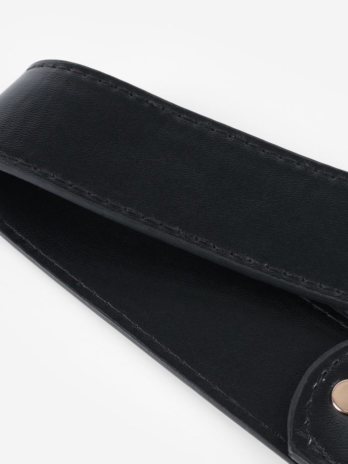 Эта черная ручка для сумки с карабинами — стильное и практичное решение для обновления вашего аксессуара. Ее длина 35±1 см делает ее удобной для ношения через плечо или в руке. Искусственная кожа высокого качества и золотая фурнитура создают элегантный и современный образ.
