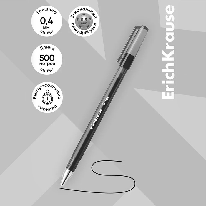 - Пишущий узел с диаметром шарика 0.5 мм в сочетании с гелевыми быстросохнущими чернилами обеспечивает точное и быстрое письмо без усилий.
