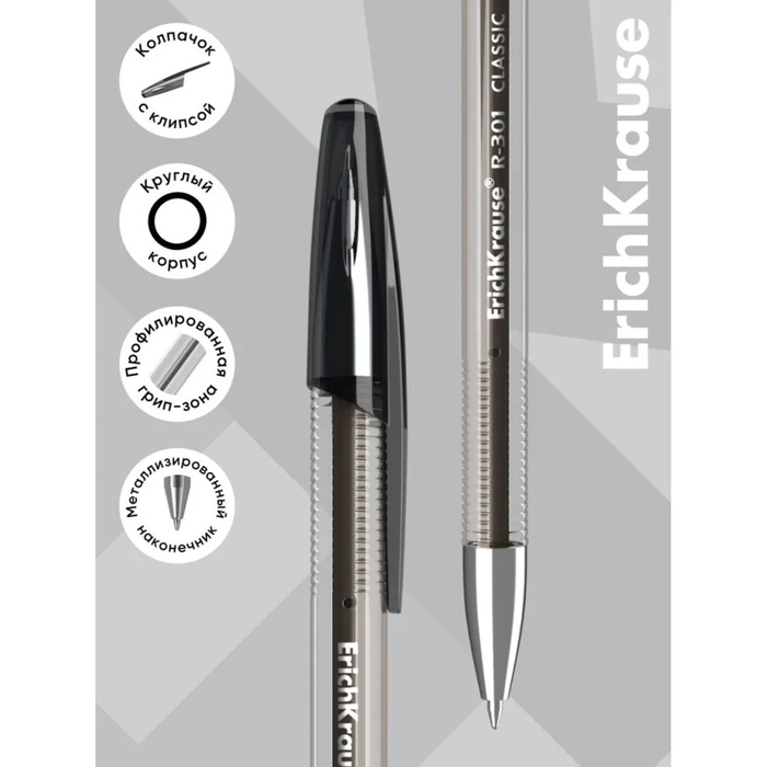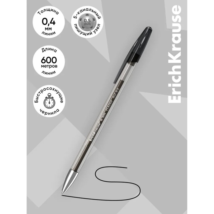 Ручка гелевая ErichKrause R-301 Classic Gel Stick, узел 0.5 мм, чернила чёрные, длина линии письма 600 метров