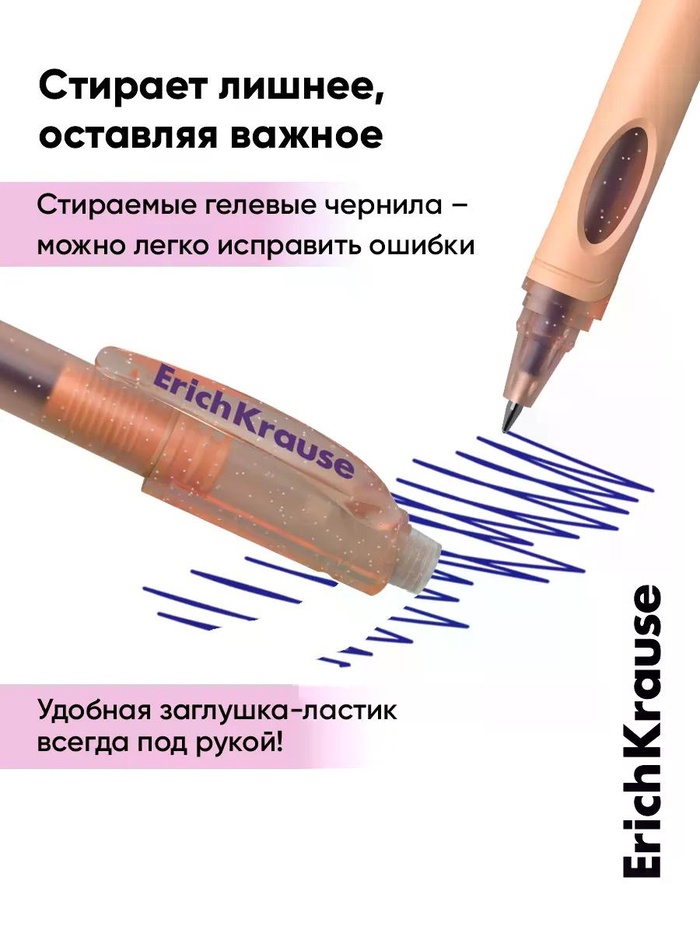 Ручка гелевая сo стираемыми чернилами ErichKrause ErgoLine Prima Cat, узел 0.5, синяя, МИКС