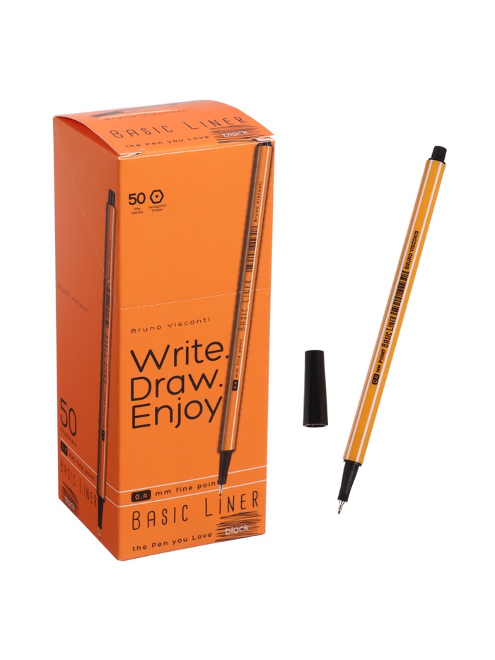 Чёткость линий и плотность чёрного цвета имеют значение для записей и набросков. Этот тонкий линер с пишущим узлом 0.4 мм создаёт аккуратный, нестираемый контур. Клиновидный наконечник точно передаёт движение руки, а простой пластиковый корпус делает ручку лёгкой и сбалансированной для ежедневного ношения в пенале.