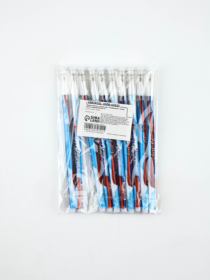 Ручка пластик с колпачком «23 февраля», синяя паста, шариковая 0.5 мм