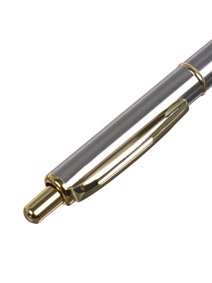 Эта автоматическая шариковая ручка в серебристо-золотом корпусе — выбор для динамичного рабочего дня. Металлический корпус и узел 0,7 мм создают чёткую линию, а механизм с кликом позволяет мгновенно подготовить её к письму одной рукой. Её вес и баланс ощущаются уверенно, а гладкая поверхность корпуса подходит для привычного захвата.