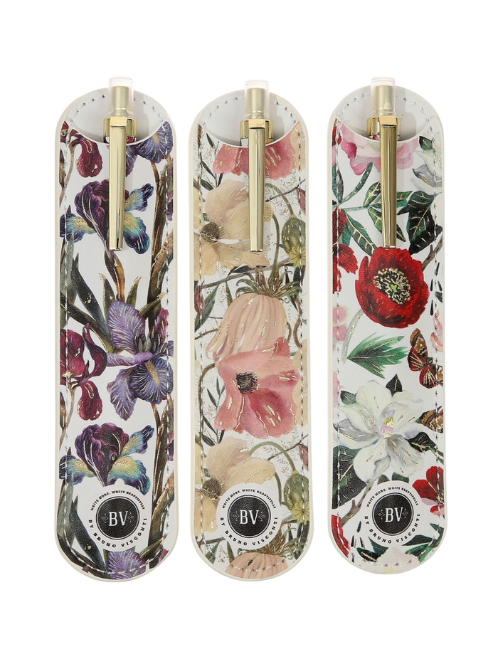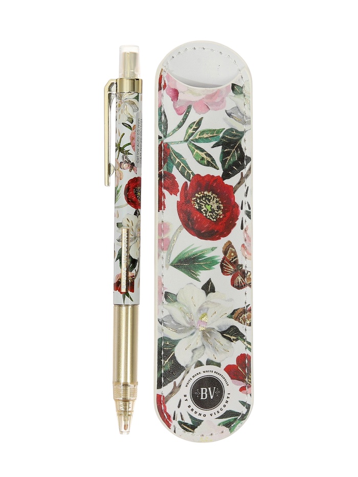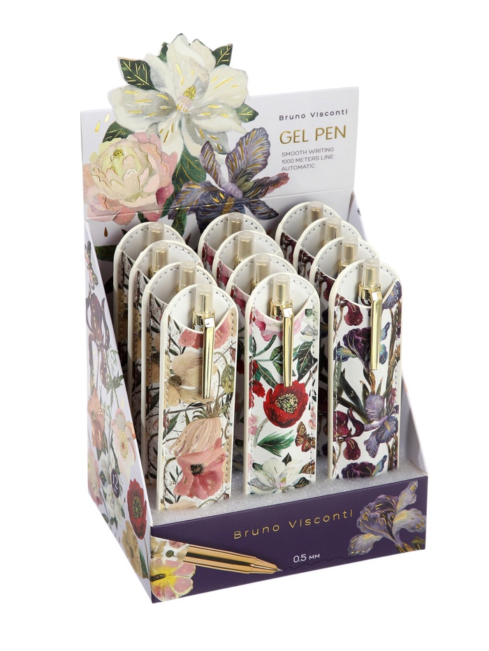 Ручка подарочная в чехле из экокожи гелевая BrunoVisconti: flowers, автоматическая, синяя, 0.5 мм