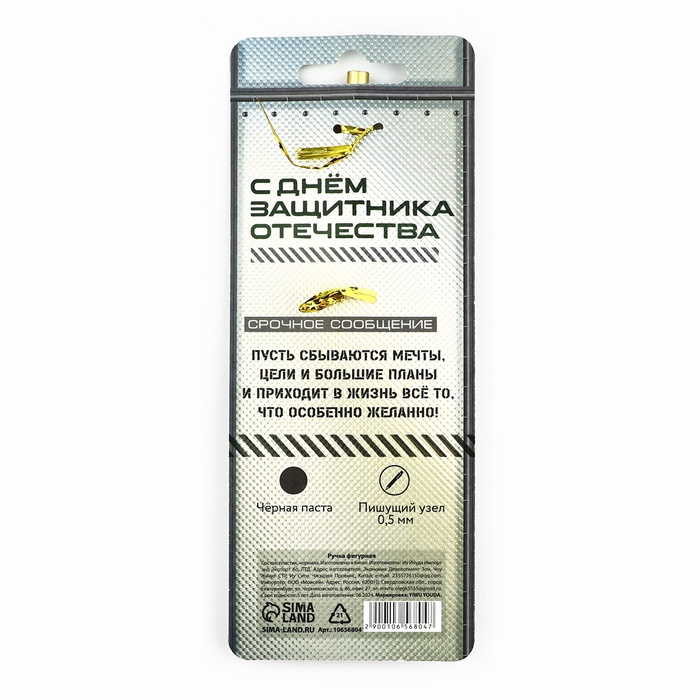 Ручка прикол, гелевая, пистолет "Настоящему герою. 23 февраля", пластик, на подложке