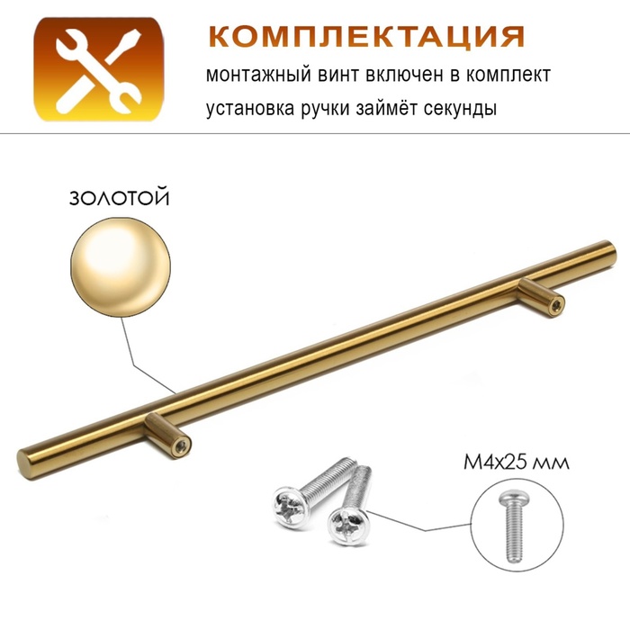 Ручка-рейлинг CAPPIO FRIDA, нержавеющая сталь, d=12 мм, м/о 224 мм, цвет золото, 4 шт.