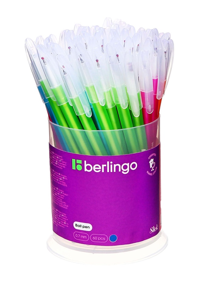 Шариковая ручка Berlingo Slick с актуальным минималистичным дизайном придётся по душе тем, кто ценит лаконичность и яркие акценты. Ручка оснащена вентилируемым колпачком, который безопасен при использовании детьми. Пластиковый клип позволяет разместить ручку в любом удобном месте, например, на тетради или блокноте. Диаметр пишущего узла составляет 0,7 мм, благодаря чему ручка прекрасно подходит для любого стиля письма. Уникальная запатентованная технология Smart Ink обеспечивает лёгкое и приятное письмо без усилий за счёт чернил пониженной вязкости, специальной конструкции пишущего узла и инновационных материалов шарика. Технология Smart Ink, Цвет чернил: синий, Толщина линии письма: 0,5 мм, Длина письма: 950 метров, Цвет корпуса: микс из 5-ти цветов.
